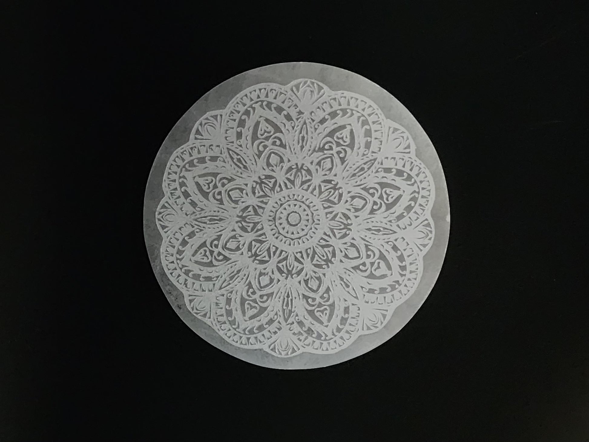 Satin Spar Selenite - Round cleansing plate - Flower